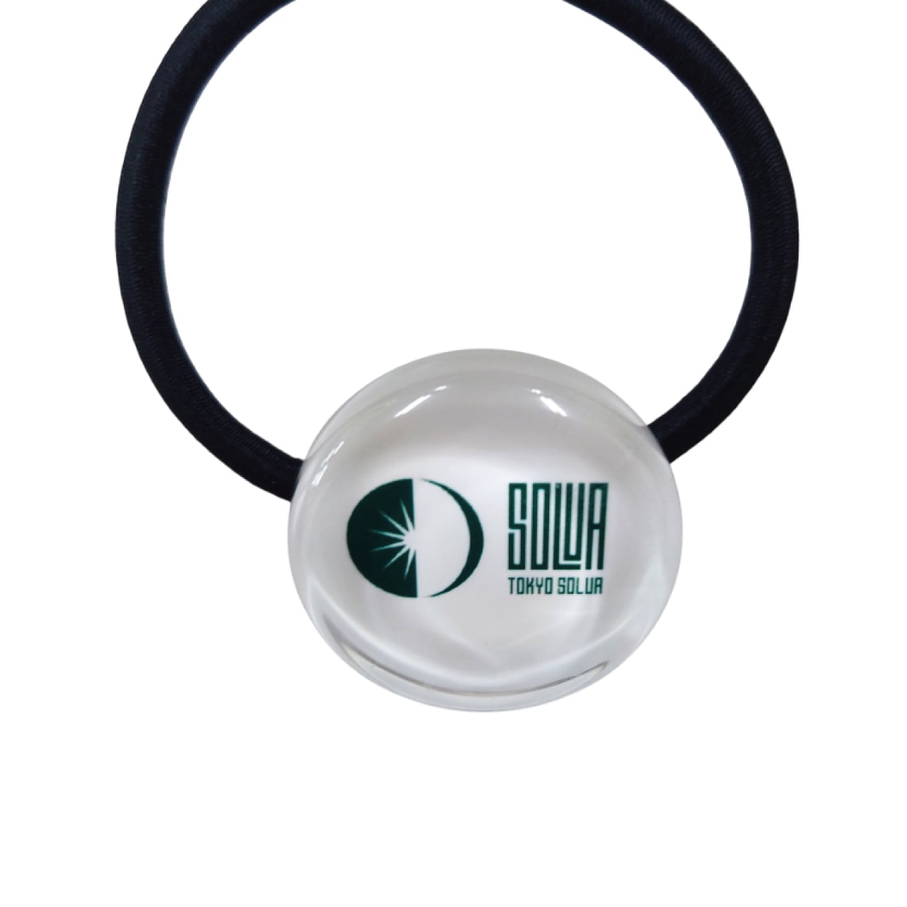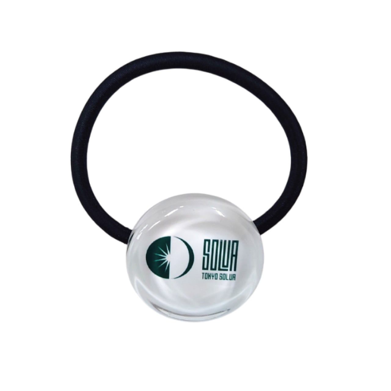 SOLUAロゴの入ったチャーム付きヘアーゴム